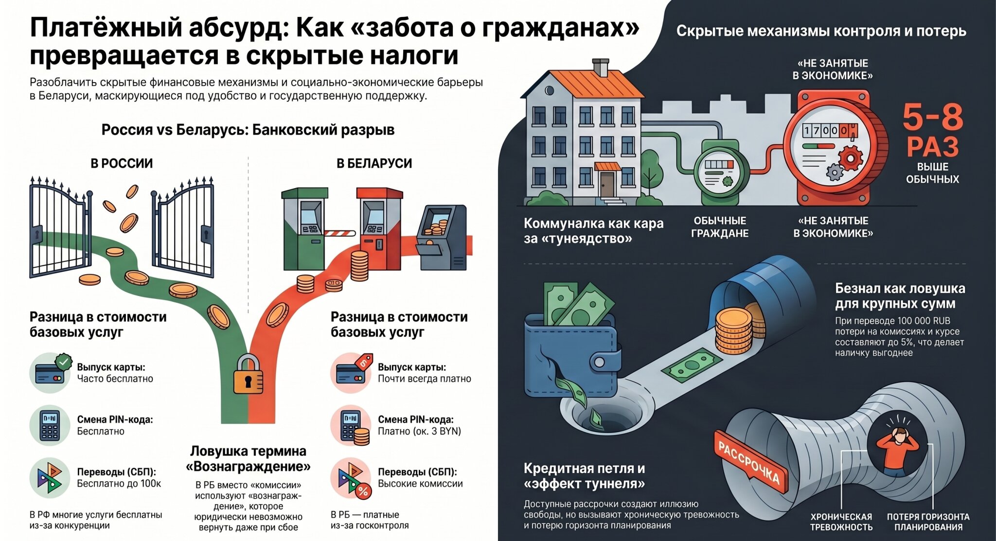 Банковские комиссии, налог на тунеядство и кредитная петля работают как единая система. Они создают хронический дефицит, из которого невозможно выбраться: